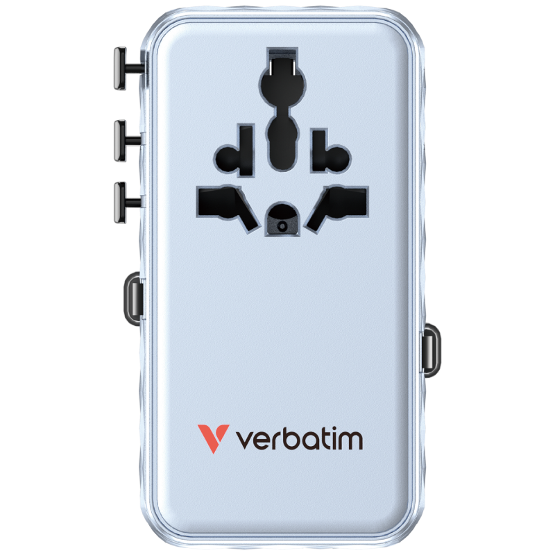 Adapter podróżny Verbatim 1x USB-C 1x USB-A 1x AC + 2x Kabel USB-C Niebieski - Blue