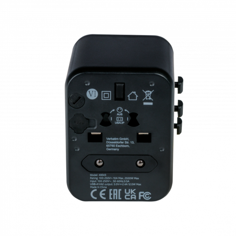 Adapter podróżny Verbatim 2x USB-A 1x AC Czarny - Black