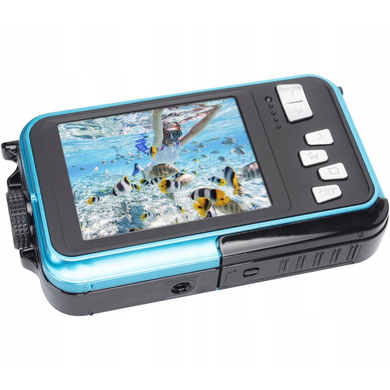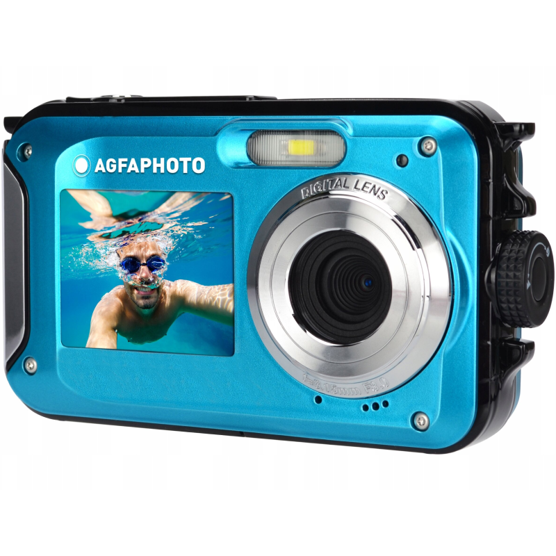 Wodoodporny aparat cyfrowy AgfaPhoto Realishot WP8000 to wytrzymała konstrukcja wyposażona w innowacyjny system dwóch ekranów LCD, który umożliwia łatwe kadrowanie podwodnych selfie oraz nagrywanie filmów do głębokości 3 metrów. Dzięki matrycy o wysokiej rozdzielczości i 16-krotnemu zoomowi cyfrowemu, urządzenie gwarantuje wyraźne zdjęcia z wakacyjnych przygód bez konieczności stosowania dodatkowej obudowy ochronnej.