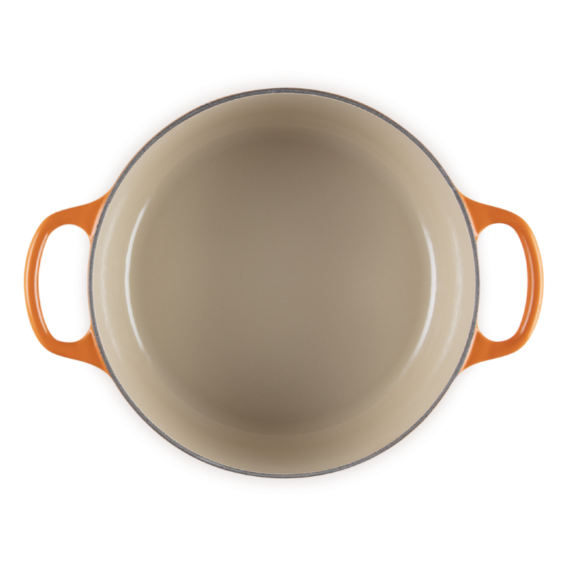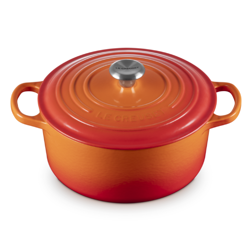Brytfanna marki Le Creuset w kolorze płomiennej czerwieni o średnicy 22 cm i pojemności 3,3 l to kultowe naczynie idealne do długiego duszenia, pieczenia oraz serwowania gorących dań. Żeliwne naczynie zapewnia równomierny rozkład i doskonałe zatrzymywanie ciepła, a jej trwała konstrukcja jest w pełni kompatybilna ze wszystkimi źródłami ciepła (w tym indukcja).