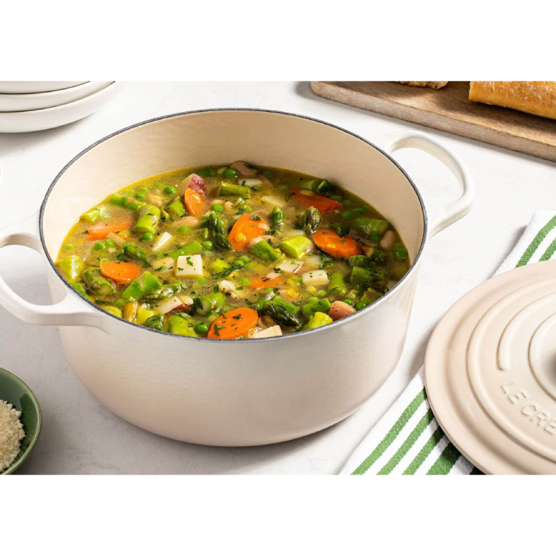 Wybór brytfanny Le Creuset to inwestycja w najwyższą jakość potwierdzoną dożywotnią gwarancją oraz tradycyjną francuską produkcją. Jasna emalia wewnątrz naczynia ułatwia utrzymanie czystości, a duże, ergonomiczne uchwyty zapewniają bezpieczne przenoszenie garnka nawet w grubych rękawicach kuchennych. Naczynie zaprojektowano z myślą o efektywnym gotowaniu na małym i średnim ogniu, co sprzyja oszczędności energii i ochronie struktury żeliwa.