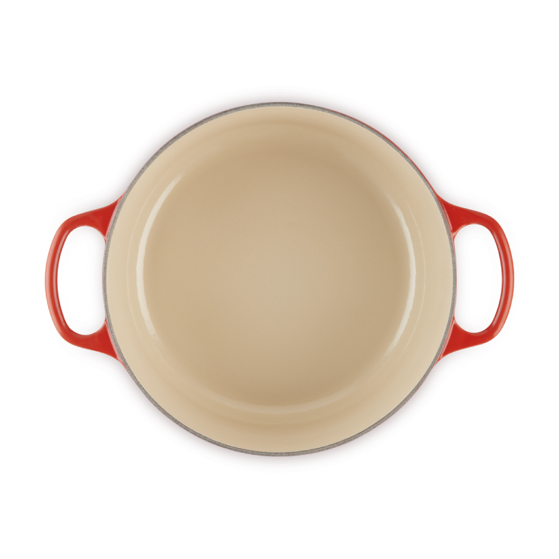 Okrągła brytfanna żeliwna o średnicy 24 cm stanowi niezastąpione narzędzie do powolnego duszenia, pieczenia oraz smażenia ulubionych potraw. Dzięki zastosowaniu emaliowanego żeliwa naczynie Le Creuset doskonale akumuluje i równomiernie rozprowadza ciepło, co umożliwia wydobycie pełni smaku z każdego składnika. Brytfanna jest w pełni kompatybilna z płytami indukcyjnymi, piekarnikami oraz grillami.