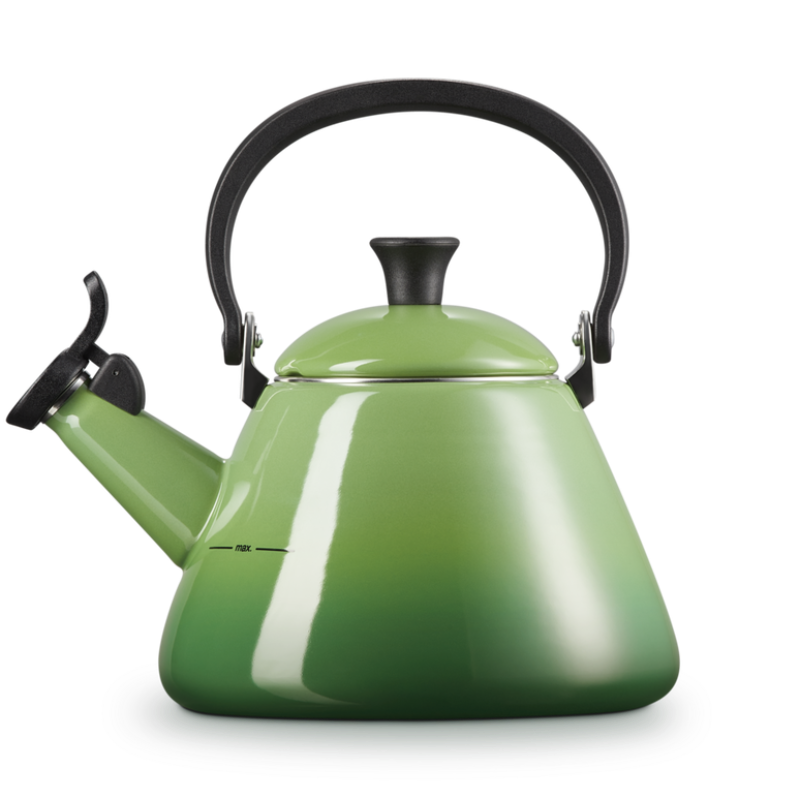 Stylowy czajnik Kone Le Creuset o pojemności 1,6 l został wykonany z trwałej stali węglowej emaliowanej, co gwarantuje szybkie i skuteczne nagrzewanie na wszystkich źródłach ciepła, w tym indukcji. Czajnik posiada charakterystyczny, składany uchwyt, który ułatwia napełnianie i przechowywanie oraz szeroką podstawę zapewniającą optymalną wydajność cieplną.
