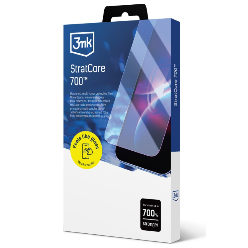 Wielowarstwowa folia ochronna 3mk StratCore700 do Apple iPhone 15 Pro Max o grubości 0,4 mm wzmacnia wytrzymałość ekranu aż o 700%, zapewniając jednocześnie idealnie gładką powierzchnię imitującą dotyk prawdziwego szkła. Dzięki twardości na poziomie 7H oraz elastycznej konstrukcji produkt skutecznie chroni przed zarysowaniami i mikropęknięciami, zachowując pełną kompatybilność z czujnikami biometrycznymi i większością etui.