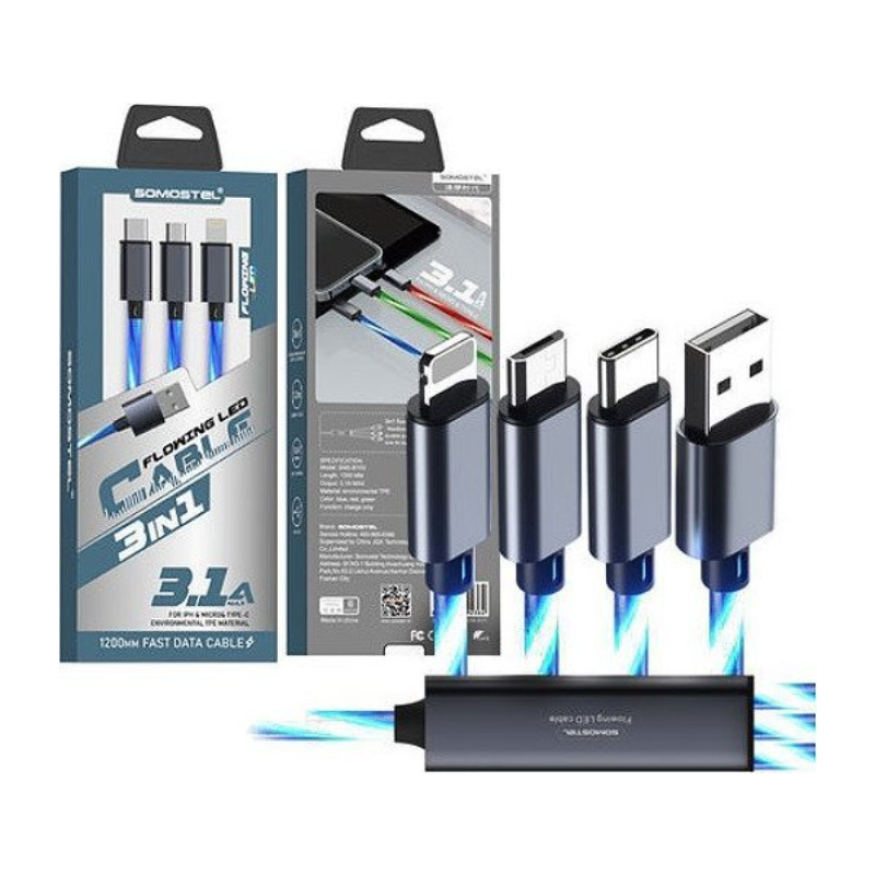 Kabel 3w1 Somostel 30 W QC 3.0 Niebieski - Blue
