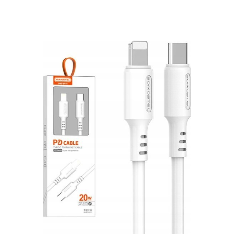 Kabel USB-C Lightning Somostel 20 W 120 cm Biały - White