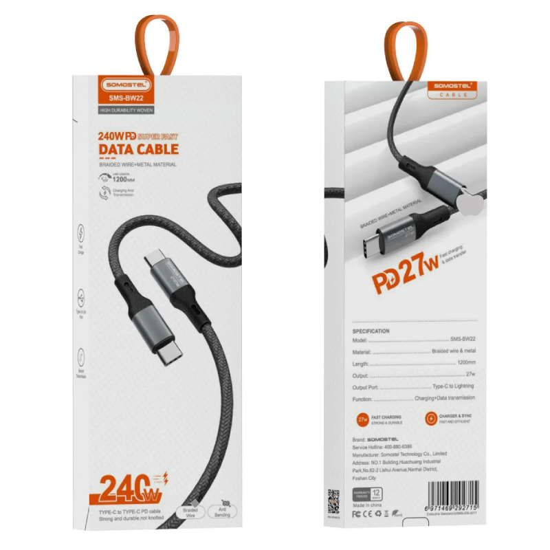 Kabel USB-C Somostel 240 W 100 cm Czarny - Black