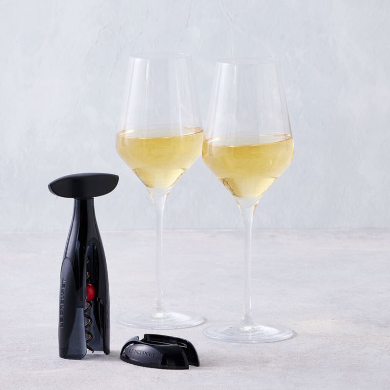 Korkociąg z obcinarką do folii Le Creuset GS-200 to niezbędny gadżet dla każdego miłośnika wina. Dzięki wyjątkowej technologii Active Ball, korkociąg pracuje za użytkownika i ułatwia szybkie i bezwysiłkowe wyciągnięcie korka poprzez samo przekręcenie uchwytu.