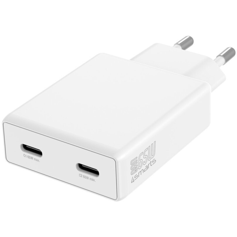 Ładowarka sieciowa 4smarts PDPlug Slim 65 W 2x USB-C Dual Biała - White