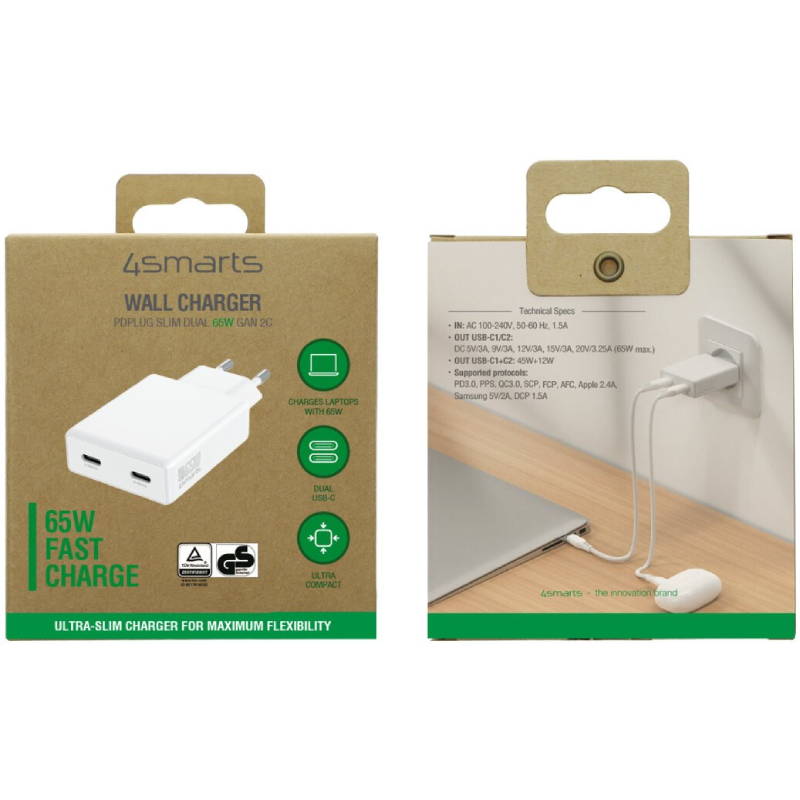 Ładowarka sieciowa 65W 4smarts PDPlug Slim Dual Biała - White