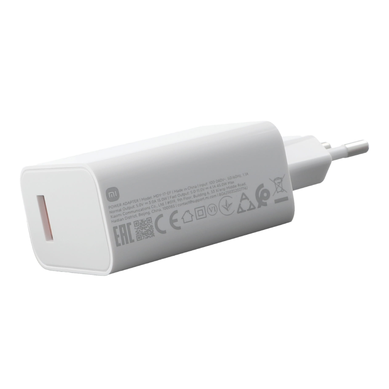 Oferowana ładowarka Xiaomi o mocy 45 W wykorzystuje technologię Turbo Charging, która pozwala na wyjątkowo szybkie i efektywne uzupełnianie energii w kompatybilnych urządzeniach. Ta nowoczesna ładowarka sieciowa dysponuje inteligentnym systemem zabezpieczeń chroniącym sprzęt przed przepięciami oraz przegrzaniem w trakcie pracy.