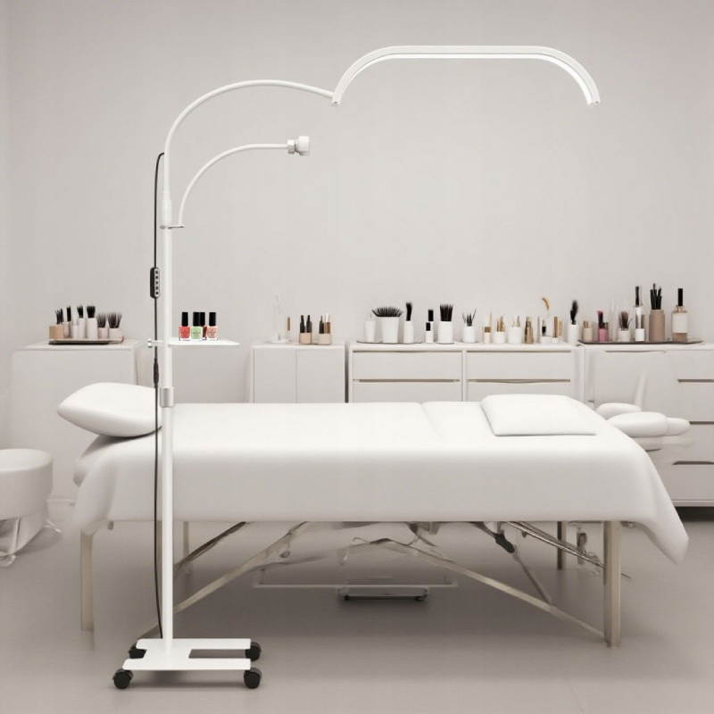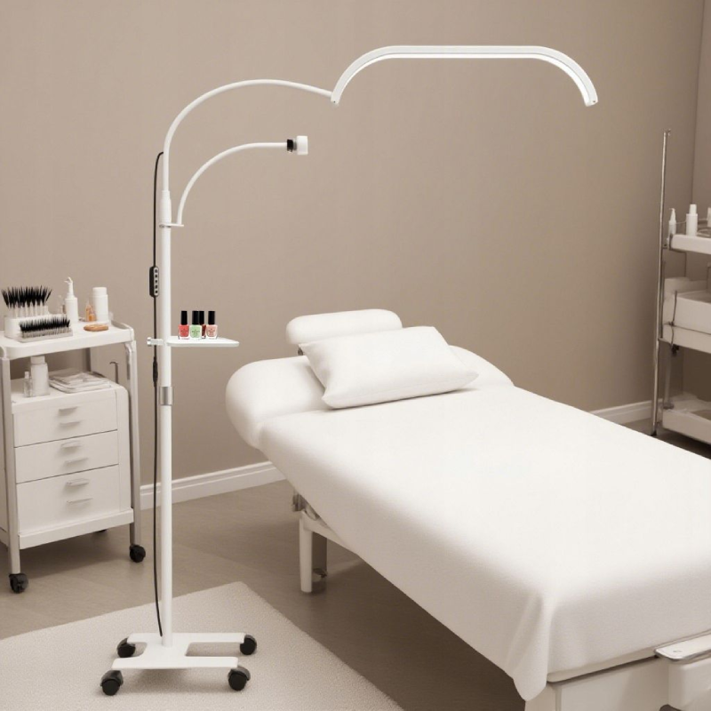 Wydajna lampa kosmetyczna bezcieniowa o mocy 45 W to mobilne oświetlenie na kółkach, stworzone z myślą o profesjonalistach branży beauty poszukujących najwyższej precyzji. Dzięki łukowatej głowicy, współczynnikowi CRI > 90 oraz płynnej regulacji barwy światła, lampa zapewnia perfekcyjne warunki do stylizacji rzęs, makijażu czy tatuażu, umożliwiając jednocześnie wygodne nagrywanie treści wideo dzięki zintegrowanemu uchwytowi na smartfon o szerokości od 5,5 do 8,5 cm.