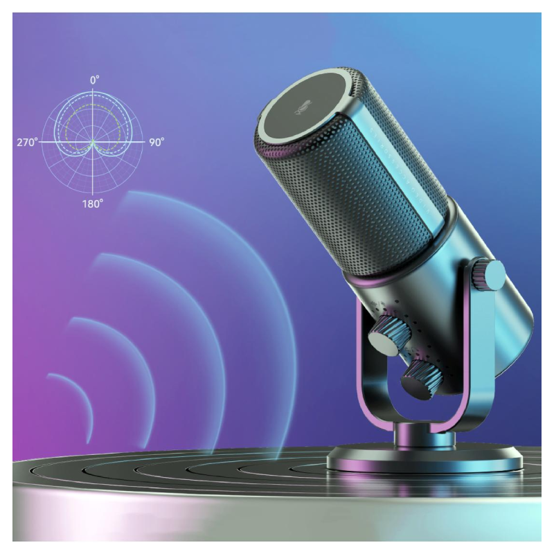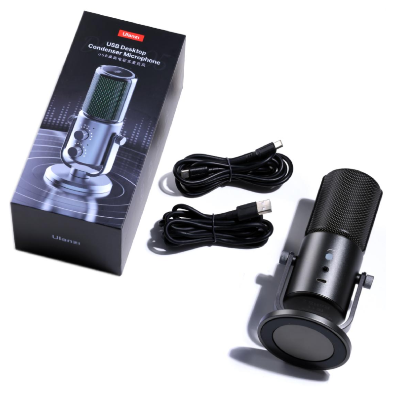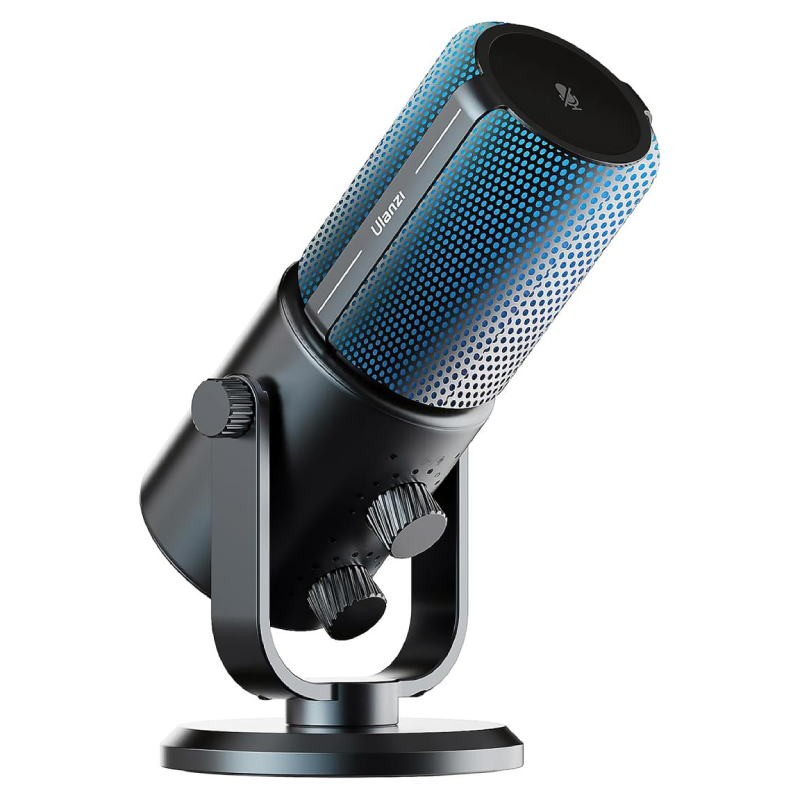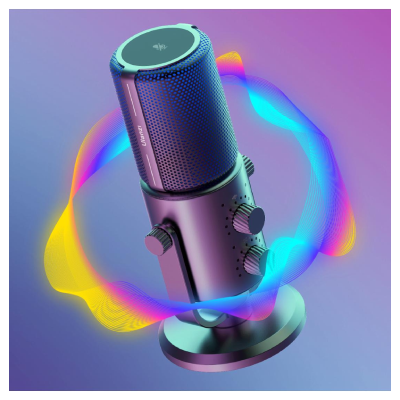 Profesjonalny mikrofon studyjny Ulanzi DCM-05 z dynamicznym podświetleniem RGB o jakości dźwięku 96 kHz/24-bit oraz charakterystyce kardioidalnej, która skutecznie izoluje głos od szumów otoczenia. Ten mikrofon przewodowy zapewnia monitoring o zerowej latencji przez wyjście słuchawkowe, posiada metalowy pop-filtr oraz komplet przewodów USB-C o długości 175 cm, co czyni go idealnym narzędziem dla streamerów i twórców podcastów.