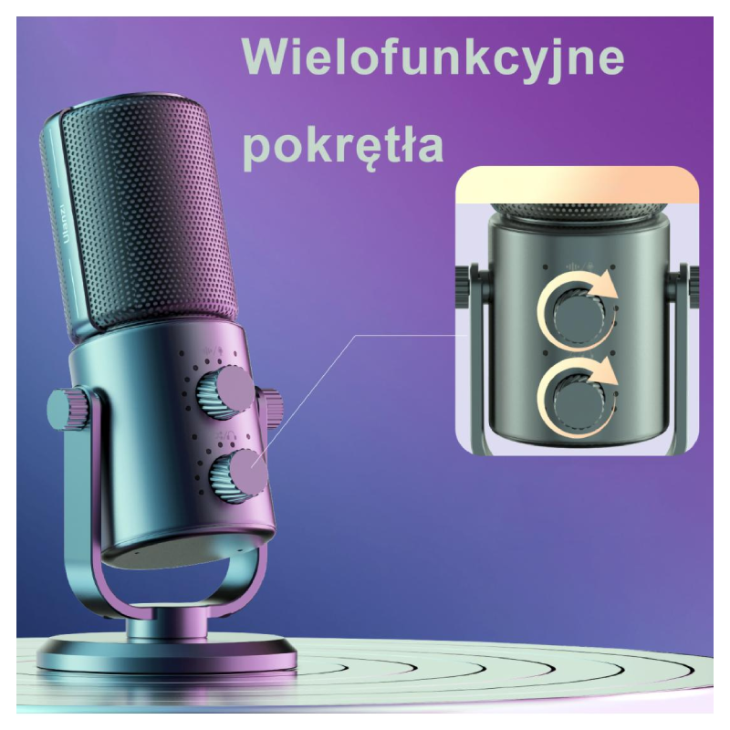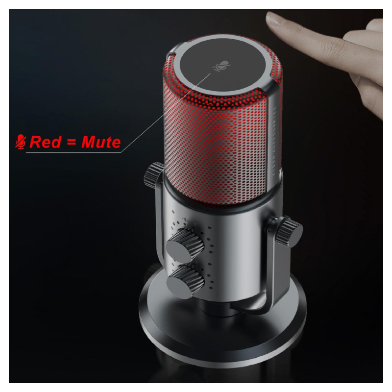 | Dodatkowe informacje | Dynamiczne podświetlenie RGB (reagujące na głos, z możliwością zmiany trybów), funkcja Mute z czerwonym wskaźnikiem świetlnym, filtr dolnozaporowy 100 Hz, materiał wykonania: aluminium, podgląd w czasie rzeczywistym, pop-filtr. |