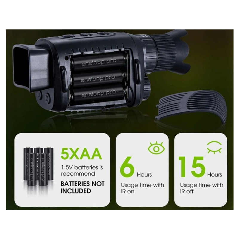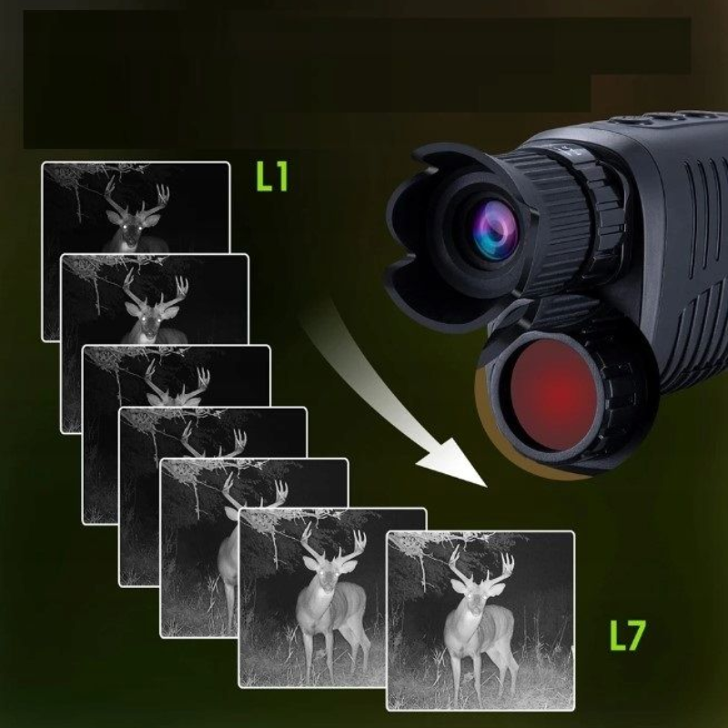 Apexel NV007 to cyfrowy monokular noktowizyjny z 10-krotnym zoomem i obiektywem 24 mm, który daje możliwość na skutecznej obserwacji w całkowitej ciemności na dystansie do 200 metrów. Urządzenie oferuje nagrywanie filmów Full HD 1080p, wykonywanie zdjęć 10MP oraz posiada wytrzymałą obudowę o klasie szczelności IP56, idealna kamera dla myśliwych i miłośników przyrody.