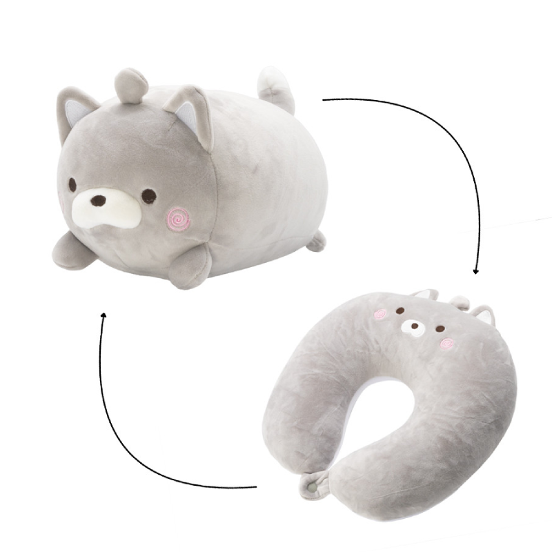 Ten wyjątkowy pluszak marki Trusty to funkcjonalna maskotka przytulanka, która w mgnieniu oka zamienia się w ergonomiczną poduszkę podróżną typu U. Miękka poduszka pluszak w kształcie szarego kotka zapewnia idealne podtrzymanie karku, łącząc radość z zabawy z maksymalnym komfortem podczas jazdy samochodem czy lotu samolotem.
