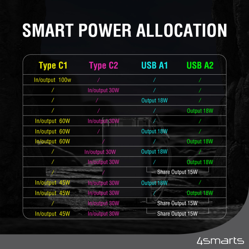 Ten ekstremalnie pojemny powerbank o pojemności 40000 mAh to potężne bezprzewodowe źródło zasilania do laptopa z szybkim ładowaniem Fast Charge. Powerbank osiąga moc wyjściową 100 W przez port USB-C. Sprawdza się jako wodoszczelny powerbank o dużej wytrzymałości, który spełnia normę IP67 (wodo- i pyłoszczelność) oraz posiada cyfrowy wyświetlacz LCD do monitorowania parametrów w czasie rzeczywistym.