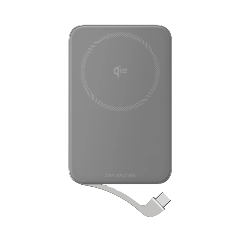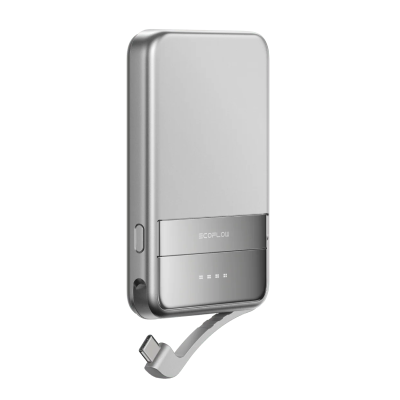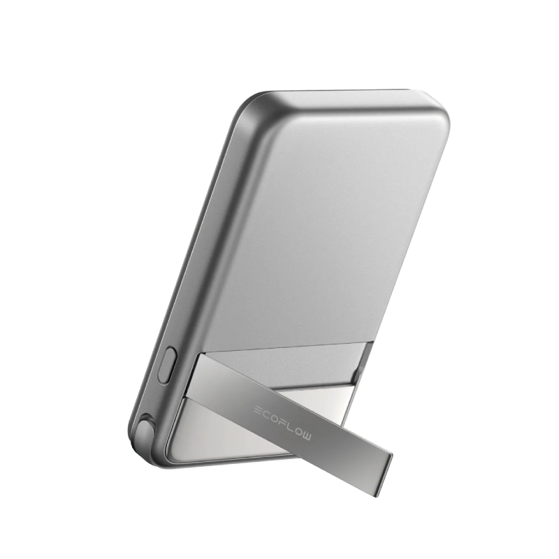 Niezwykle poręczny i stylowy srebrny mini powerbank EcoFlow Rapid o pojemności 5000 mAh jest dyskretnym, bezprzewodowym akcesorium. Dzięki funkcji MagSafe i silnym magnesom, ten powerbank magnetyczny gwarantuje szybkie ładowanie i pewne przyleganie do kompatybilnych smartfonów.