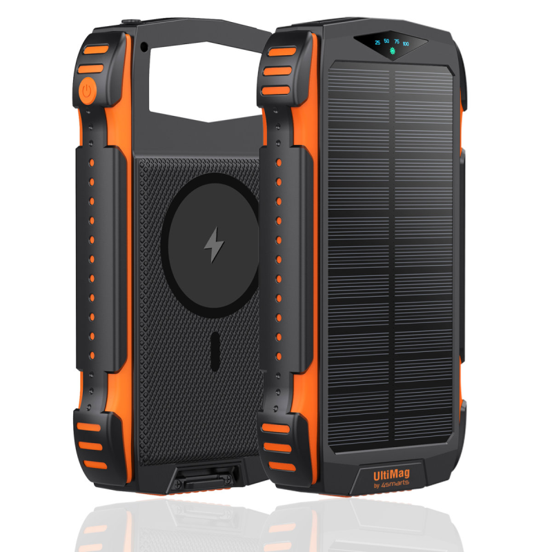Ten wzmocniony powerbank solarny TitanPack UltiMag o dużej pojemności 20 000 mAh jest umieszczony w solidnej obudowie, która chroni go przed kurzem, wstrząsami i wodą, będąc idealnym towarzyszem długich podróży. Urządzenie oferuje wszechstronne i szybkie ładowanie dla wielu sprzętów jednocześnie, w tym bezprzewodowo z mocą 15 W dzięki magnesom UltiMag, które idealnie pozycjonują telefony kompatybilne z MagSafe.