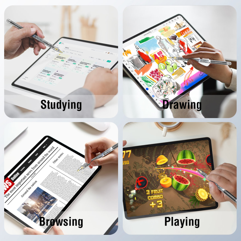 Rysik Pencil Pro Lucid zapewnia wyjątkową precyzję i responsywność: można rysować i pisać płynnie, tak jak na papierze, bez przesunięć i opóźnień. Przyjazne dla użytkownika funkcje, takie jak odrzucanie dłoni i rozpoznawanie nachylenia, zapewniają naturalne wrażenia podczas pisania i rysowania, podobne do tych, jakie daje używanie tradycyjnych długopisów i pędzli, a wygodne skróty zapewniają komfortową obsługę.
