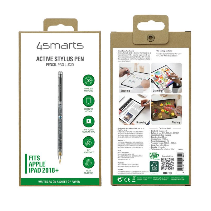 | Dodatkowe informacje | Unikalna, przezroczysta konstrukcja, bezprzewodowe ładowanie rysika, mocowanie magnetyczne, wymienne końcówki, pojemność baterii: 140 mAh. |