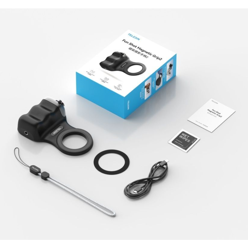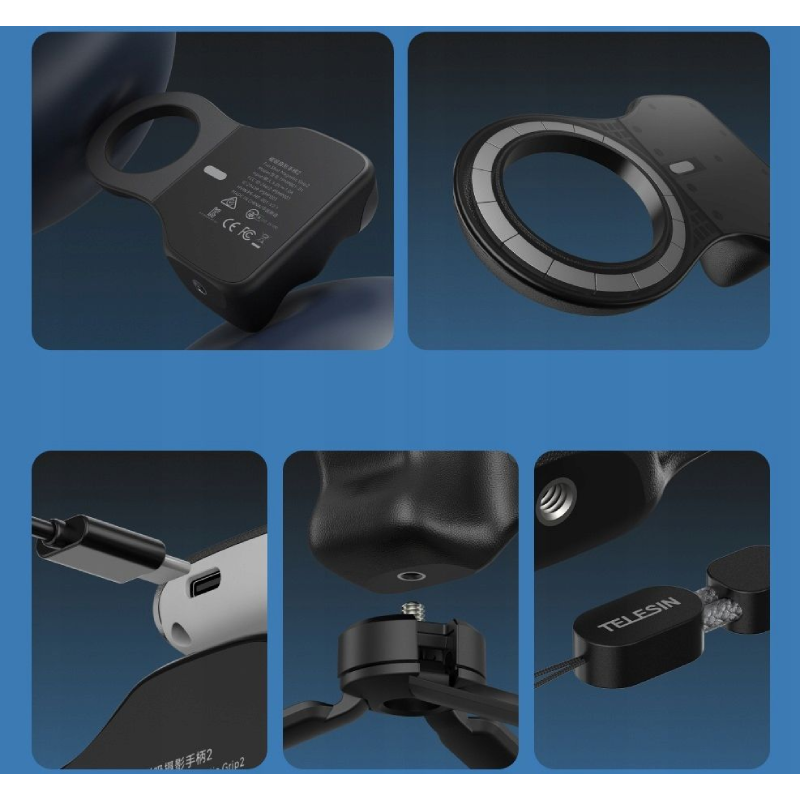 | Dodatkowe informacje | Materiał wykonania: ABS; Funkcje pilota: dwustopniowy spust migawki, zoom, zmiana trybu; Zasięg Bluetooth do 10 m; Podwójny system magnesów - udźwig do 3 kg; Gwint 1/4″; W zestawie naklejka magnetyczna. |