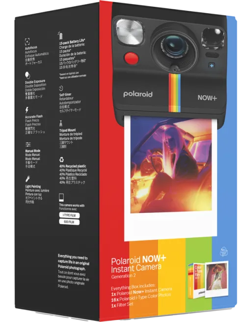 Polaroid Now+ to nowoczesny aparat do zdjęć natychmiastowych, który łączy w sobie klasyczną radość z fotografii Polaroid z najnowszymi technologiami. Opierając się na sprawdzonej konstrukcji aparatu OneStep 2, Now+ wprowadza szereg innowacji dzięki wykorzystaniu technologii Bluetooth®, co otwiera przed użytkownikami nowe, kreatywne możliwości.