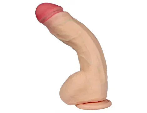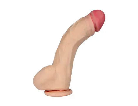 To dildo o długości 25 cm wykonane z cyber skóry, materiału przypominającego ludzką skórę, charakteryzuje się niezwykłą miękkością i elastycznością. Wbudowany "kręgosłup" pozwala na wyginanie i utrzymanie wybranego kształtu, dostosowując się do indywidualnych potrzeb użytkownika. Realistyczny wygląd z wyraźnie zaznaczonymi żyłami i jądrami potęguje doznania, a mocna przyssawka umożliwia przymocowanie do gładkich powierzchni, co ułatwia użytkowanie bez użycia rąk.