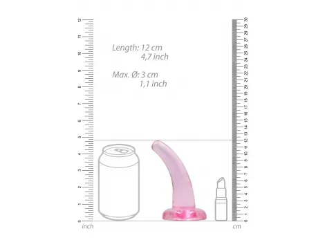 Małe, zakrzywione dildo o długości 12 cm, wykonane z elastycznego materiału, z realistyczną strukturą i mocną przyssawką, idealne do stymulacji punktu G i prostaty.