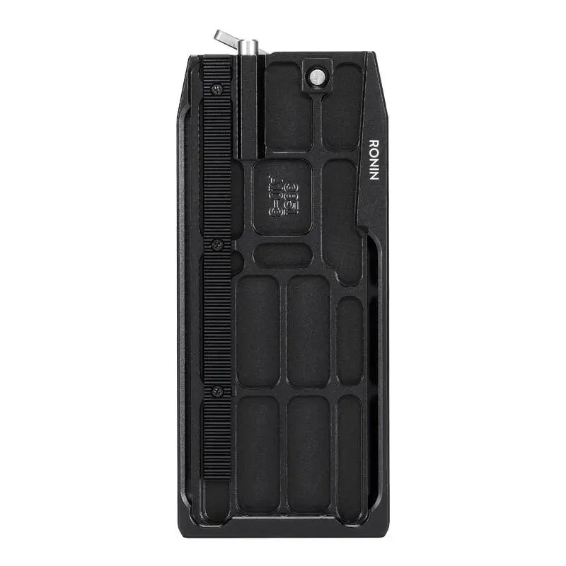 Dolna płytka z szybkozłączką ma skalę po obu stronach i ząbkowaną szczelinę na spodzie. Stanowi to uzupełnienie pokrętła dostrajania na osi pochylenia gimbala, umożliwiając operatorom wykonywanie precyzyjnych co do milimetra regulacji podczas zmiany kamery lub obiektywu. Ułatwia również szybkie przechodzenie między statywami i stabilizatorami kamery.