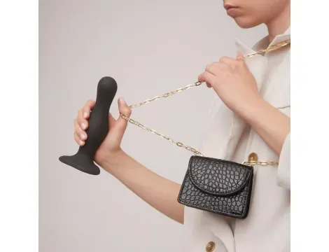 Daj się oczarować nowej hybrydowej serii "dildo plug", zaprojektowanej w celu zróżnicowania przyjemności i możliwości i specjalnie pomyślanej tak, by podążać za krzywiznami ciała. DILDO PLUG CURVY urzeknie najbardziej ambitnych swoimi obfitymi krzywiznami! Jego okrągły kształt pozwala na delikatne wkładanie i intensywną stymulację. Ciesz się przyjemnością cal po calu! W całości wykonany z płynnego silikonu, oferuje ultra miękki dotyk dla najbardziej komfortowych penetracji waginalnych i analnych. Ergonomiczny uchwyt, mocna przyssawka, kompatybilna z uprzężą, DILDO PLUG CURVY będzie Twoim najlepszym sprzymierzeńcem, aby przeżyć niezapomniane i nieograniczone doświadczenia! Jeśli jesteś fanem prostoty, uwiedzie Cię intensywny czarny kolor. Bardziej odważni ulegną dwóm pożądanym metalicznym odcieniom od pierwszego wejrzenia. Początkujący lub ekspert, od rozmiaru S do XXL, każdy znajdzie coś dla siebie! Pole możliwości jest nieskończone, to Ty jesteś mistrzem gry! Opływowy kształt Elastyczny i miękki Wysokiej jakości silikon 100% wodoodporny 5 rozmiarów: S, M, L, XL, XXL 3 kolory: czarny, metaliczny fioletowy i metaliczny różowy Smar na bazie wody Łatwy do czyszczenia