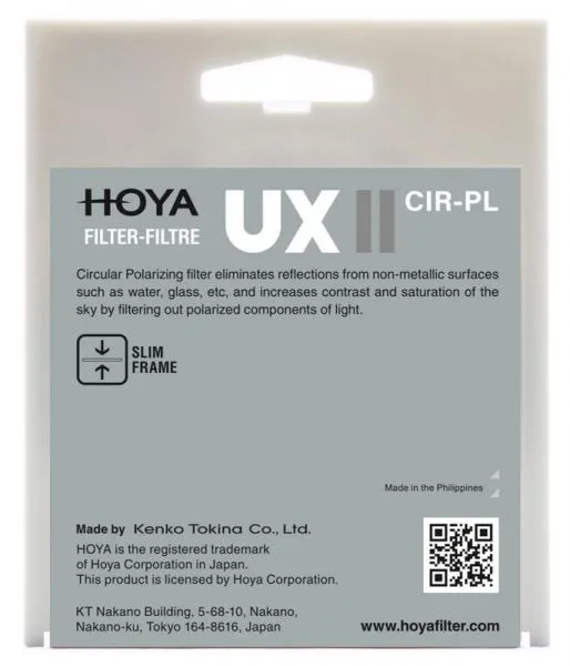 Najnowsza seria polaryzacyjnych filtrów kołowych Hoya UX II CIR-PL to następca cenionej wśród wymagających fotoamatorów serii HMC CIR-PL oraz UX. Wykorzystująca najnowsze technologie linia UX II zachowuje wysoką jakość optyczną utytułowanych poprzedników i bardzo wysoką przepuszczalność światła, dodając jeszcze skuteczniejsze powłoki antyrefleksyjne i specjalną warstwę hydrofobową redukującą osadzanie się zanieczyszczeń.