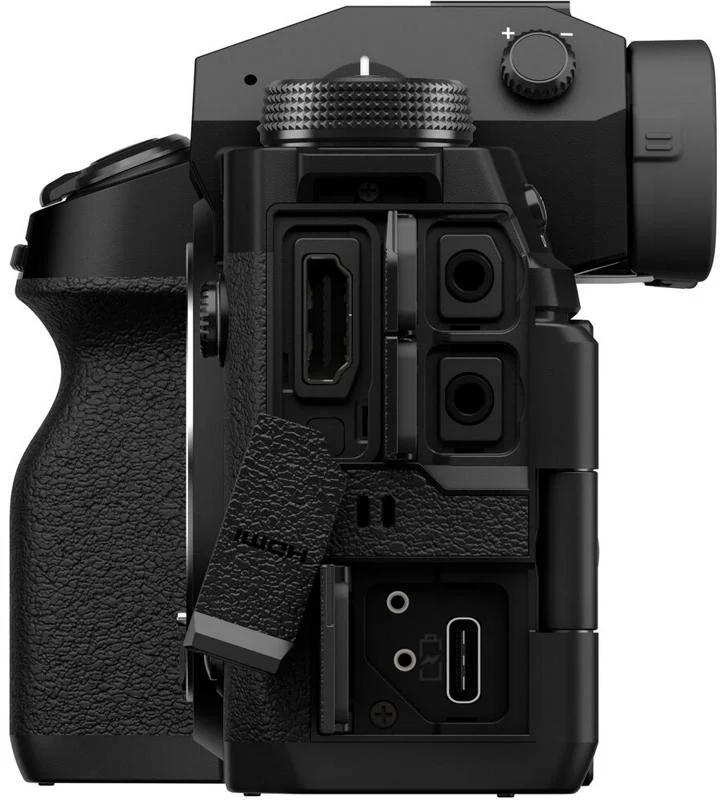 | Złącza | HDMI, USB-C, wejście mikrofonowe 3.5 mm, wyjście słuchawkowe 3.5 mm, wyjście pilota zdalnego wyzwalania migawki 2.5 mm, gorąca stopka, złącze synchronizacji z lampą błyskową |