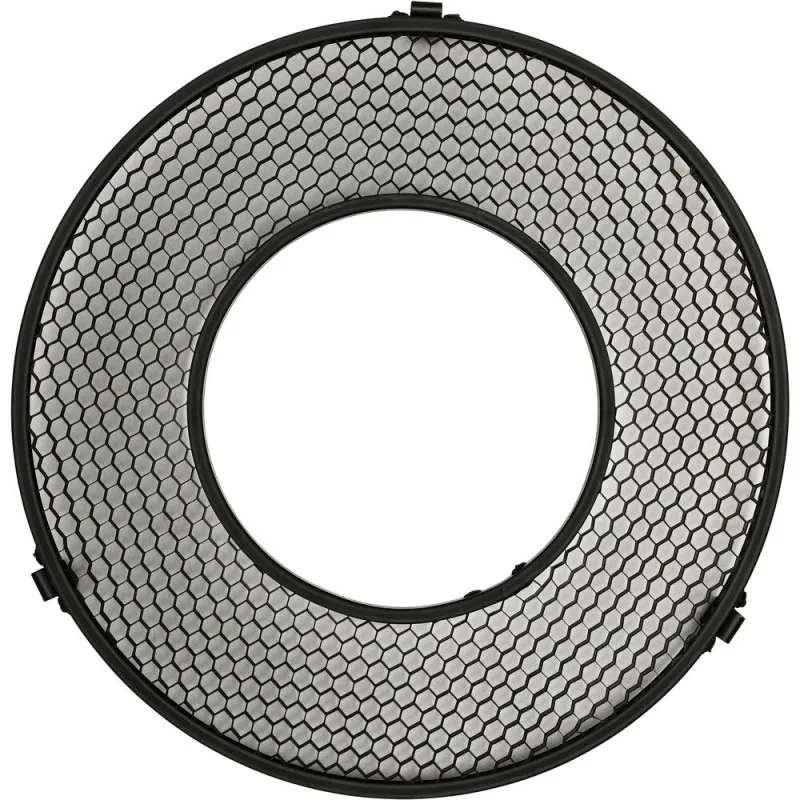 Grid o strukturze plastra miodu do głowicy R1200 (pasującej do lampy AD1200Pro) to modyfikator instalowany bezpośrednio na głowicy lampy. Nie wymaga specjalnych przejściówek. Plaster miodu 30° ogranicza rozrzut wiązki światła, umożliwiając selektywne oświetlenie obiektu.