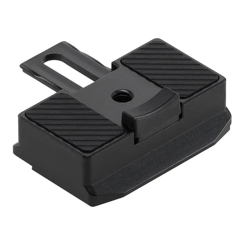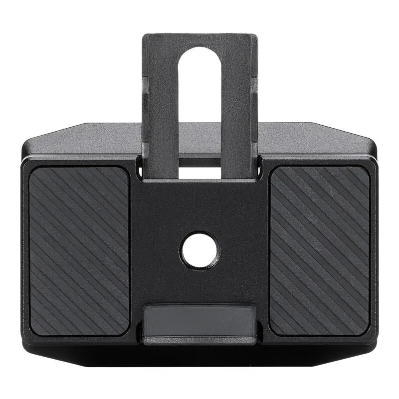 Górna płytka szybkozłączki została wyposażona w regulowaną prowadnicę, która przylega do dolnej części kamery, służąc jako ogranicznik. Nawet w przypadku użycia pojedynczej śruby 1/4", może ona zabezpieczyć kamerę na miejscu, zapobiegając jej poluzowaniu lub przesunięciu.