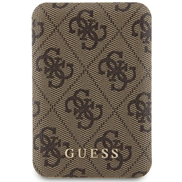 Guess Powerbank indukcyjny 15W GUPB5FP4EMGW 5000mAh brązowy/brown 4G Leather Metal Logo MagSafe