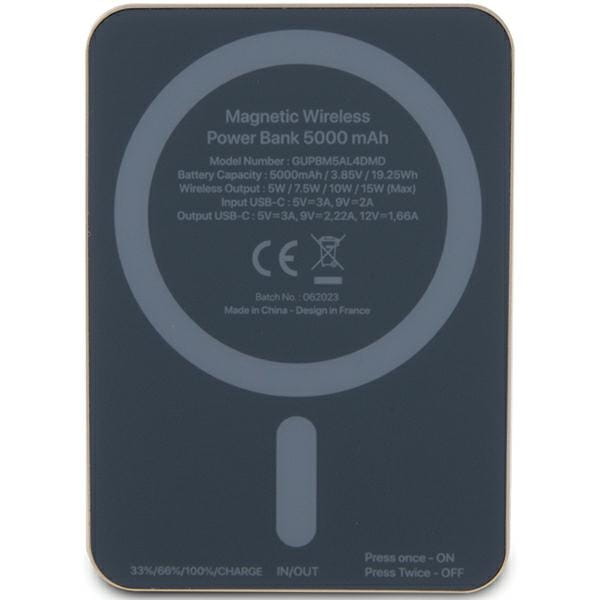 Guess Powerbank indukcyjny 15W GUPBM5AL4DMD 5000mAh złoty/gold MagSafe 4G Strassed Metal Logo