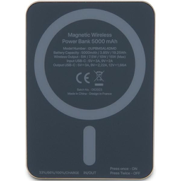 Guess Powerbank indukcyjny 15W GUPBM5ALGSGD 5000mAh złoty/gold MagSafe Metal Script Logo