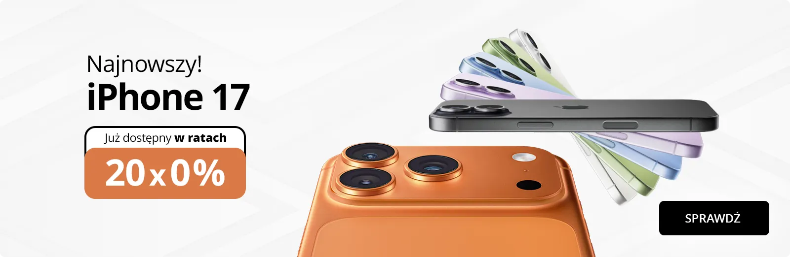 Szukasz promocji na iPhone 17, iPhone 17 Pro, iPhone 17 Pro Max, iPhone Air bądź budżetowy iPhone 17e? W AB Foto dbamy o to, aby nasi Klienci otrzymali wybrane produkty w zawsze korzystnej cenie - iPhone 17 i pozostałe telefony marki Apple nie są wyjątkiem. Na naszej stronie co jakiś czas pojawiają się promocje, zaś najnowsze telefony z jabłuszkiem możesz zakupić na raty. Na karcie produktu znajdziesz opcję "Oblicz ratę", dzięki której poznasz jej wysokość i będziesz mógł szybciej cieszyć się swoim wymarzonym modelem Apple iPhone 17, iPhone 17e, iPhone 17 Pro, iPhone 17 Pro Max bądź ultralekkim iPhone Air.