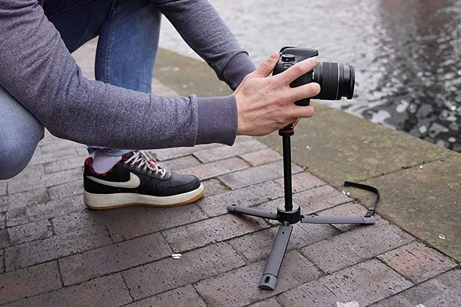 Rozstawienie nóg TelePod Pro można regulować w 3 krokach, a nawet ustawić w całkowicie płaskiej pozycji dla maksymalnej stabilności. Niezależny rozstaw nóg pozwala na kompensację nierówności powierzchni i pewne ustawienie praktycznie w każdym miejscu. Do jednej z nóg można przymocować pasek na nadgarstek, co zapewnia dodatkowe zabezpieczenie sprzętu podczas zdjęć i filmowania.