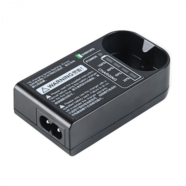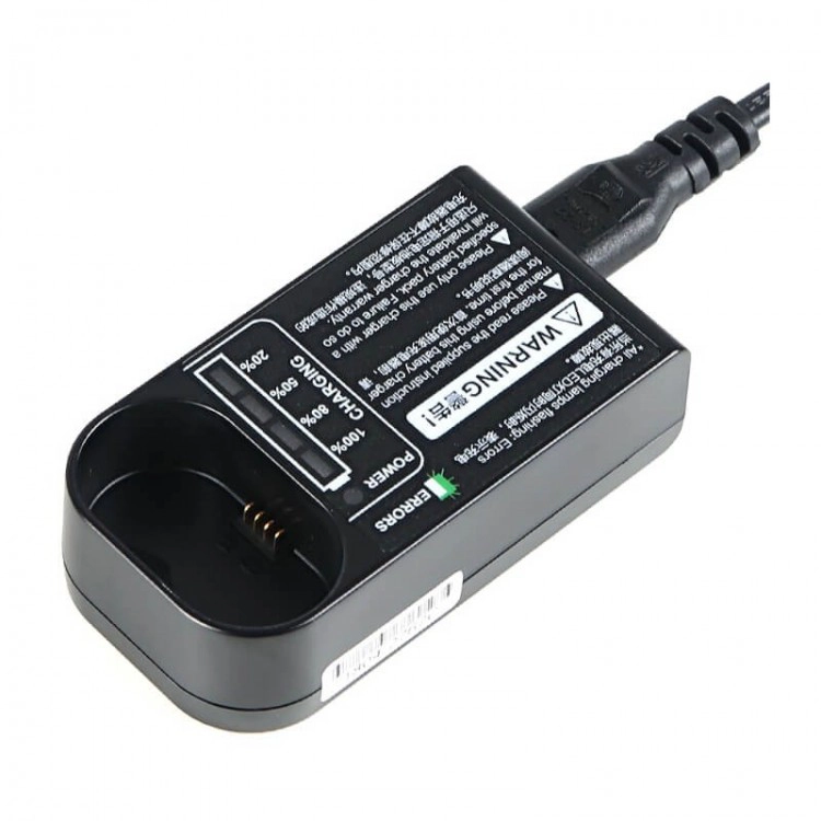 Godox C20 to ładowarka akumulatorów Godox VB-20 o pojemności 2000mAh. Zasilana z sieci elektrycznej ładowarka C20 ładuje pusty akumulator VB-20 do maksymalnej pojemności w czasie ok. 2,5h.