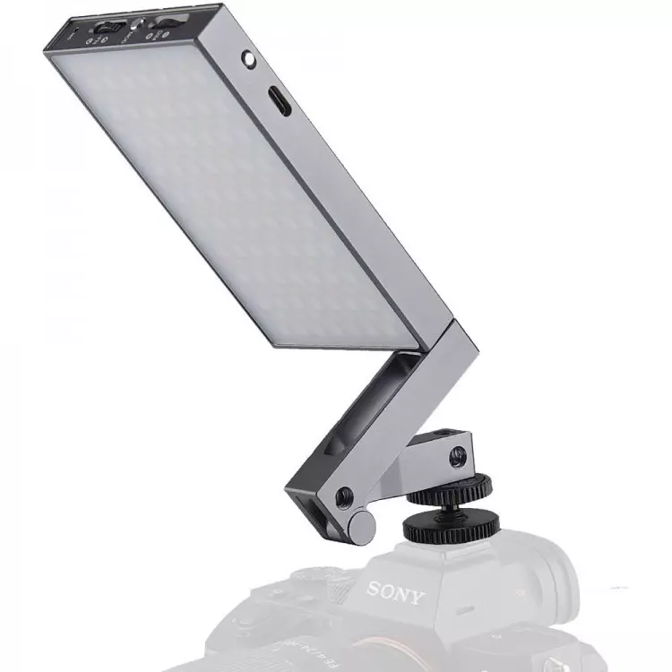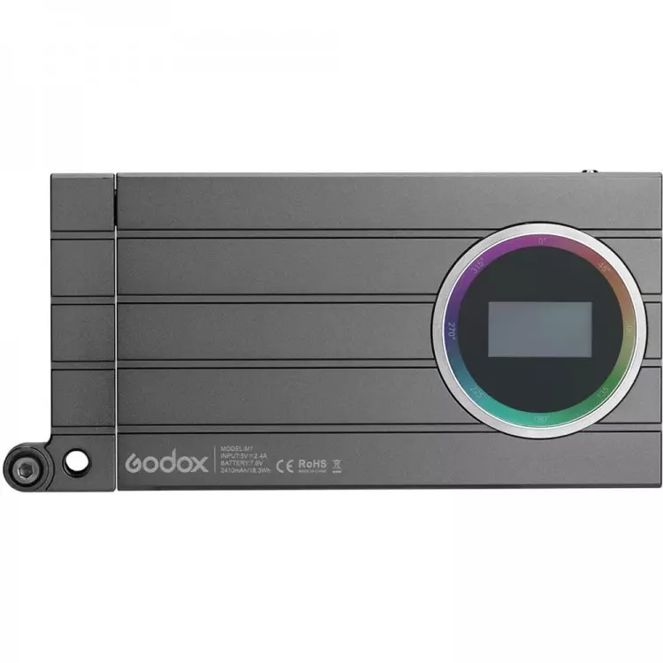 Panel Godox M1 RGB Mini LED ma zintegrowany, przegubowy wspornik montażowy, który zawiera gwint 1/4"-20, umożliwia on montaż panelu w różnych pozycjach. Jest też wbudowany mikrofon do korzystania z trybu muzycznego, który umożliwia zmianę światła w rytm muzyki.