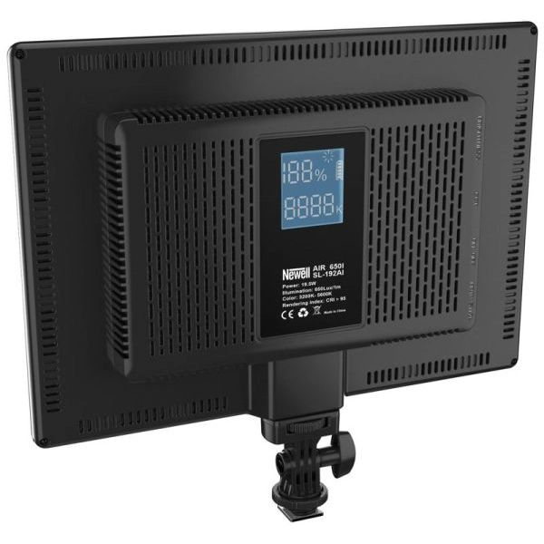 Newell Air 650i posiada wbudowany dyfuzor, dzięki czemu uzyskujemy przyjemne, miękkie światło, bez konieczności zastosowania dodatkowych akcesoriów. Moc światła i temperaturę barwową można regulować płynnie za pomocą pokręteł, a kontrolę parametrów ułatwia wbudowany wyświetlacz.