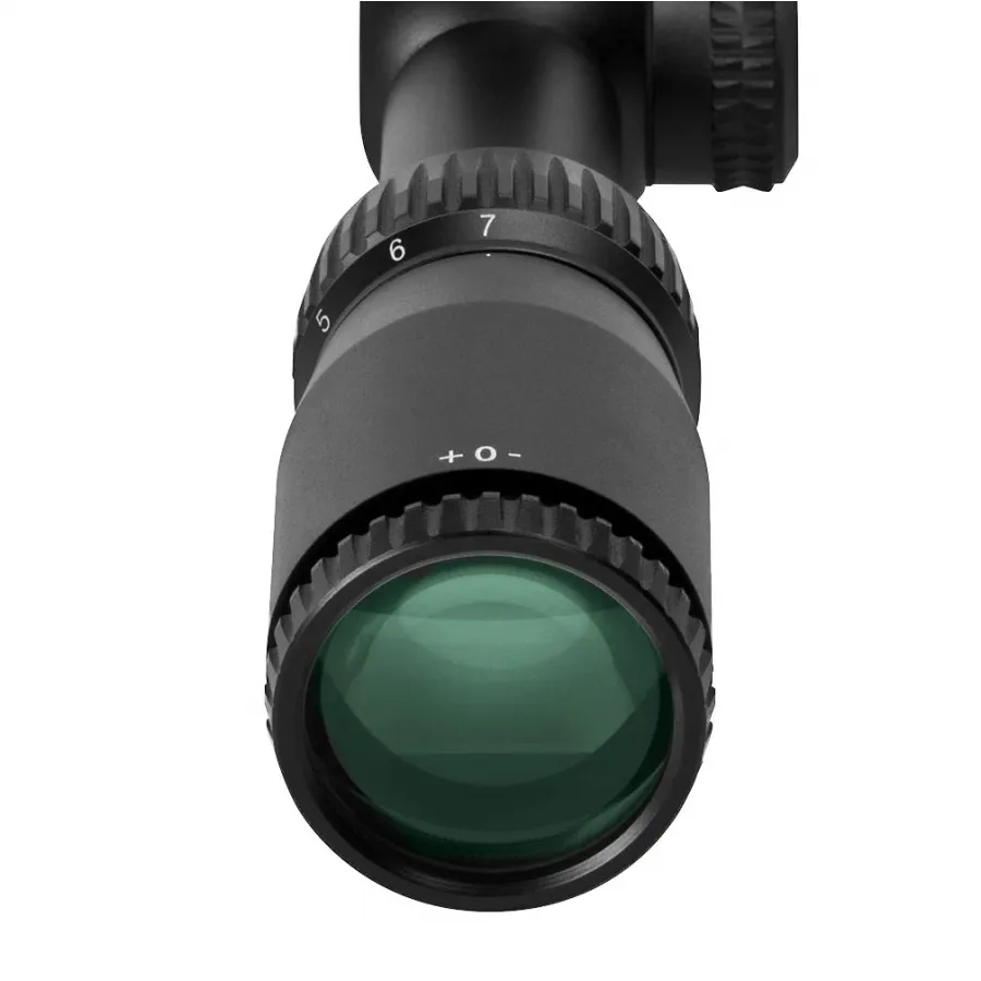 Soczewki lunety pokryte są wielowarstwową powłoką antyrefleksyjną, co poprawia transmisję światła i gwarantuje jasny, ostry obraz celu, nawet przy słabym oświetleniu. Luneta wyposażona jest w siatkę celowniczą V-Plex (MOA) w drugim planie ogniskowym, co oznacza, że rozmiar siatki pozostaje stały niezależnie od powiększenia.