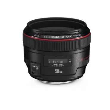 Profesjonalny standardowy obiektyw Canona z serii L (Luxury). To najjaśniejsza 50-tka produkowana przez Canona, doskonale sprawdza się przy słabym oświetleniu. Przysłona f/1.2 wyróżnia się niewielką głębią ostrości, daje to możliwość szczegółowego wyróżnienia elementu z tła. Po podpięciu obiektywu do aparatu z matrycą APS-C uzyskujemy ekwiwalent ogniskowej 80 mm. Daje to idealny obiektyw do fotografii portretowej. Do budowy obiektywu wykorzystano najwyższej jakość optykę, w tym soczewkę asferyczną.