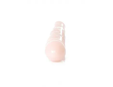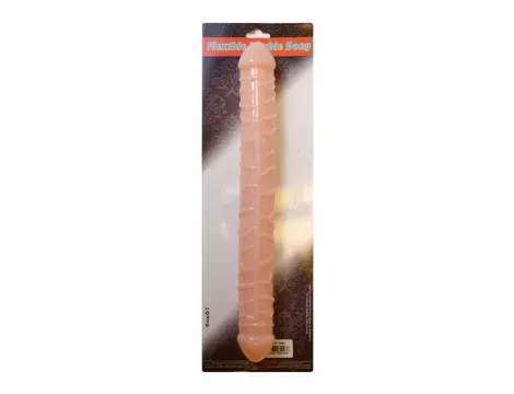 Podwójne dildo o realistycznym wyglądzie i wyraźnym żylkowaniem, przeznaczone do wspólnych zabaw dla par, wykonane z elastycznego tworzywa.