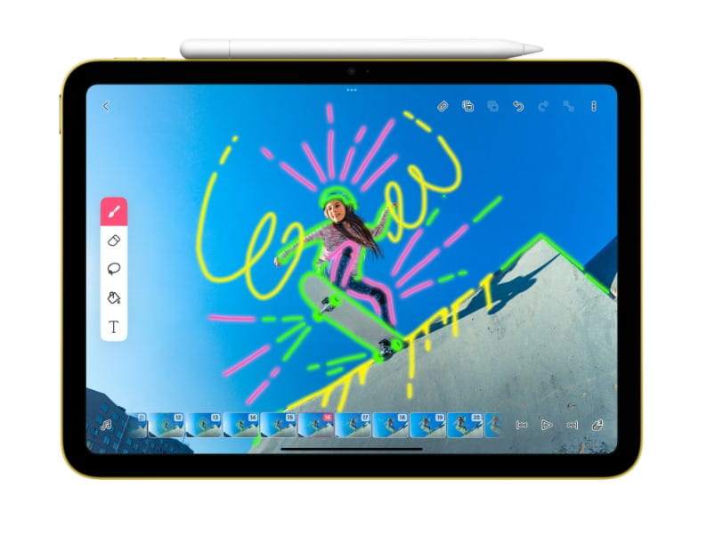 Apple Pencil (USB‑C) doskonale nadaje się do szkicowania, notowania, dodawania adnotacji do dokumentów i wielu innych zadań. Działa z precyzją co do piksela i niewielkim opóźnieniem, a do tego reaguje na kąt pochylenia. Używa się więc go równie naturalnie, jak ołówka.