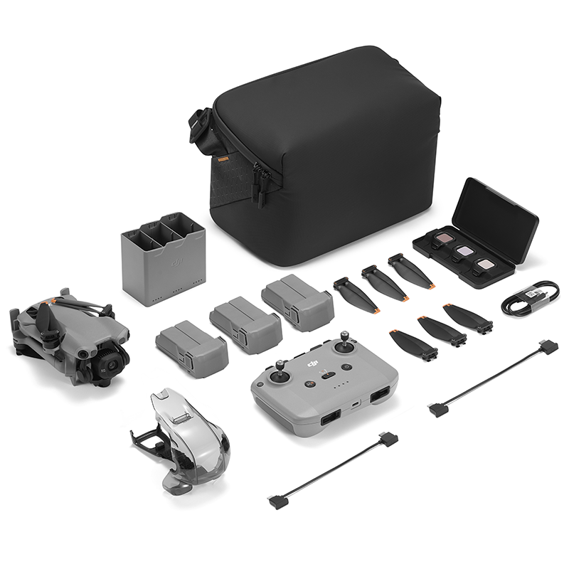 | Dołączone akcesoria | Aparatura sterująca DJI RC-N3, Kabel do aparatury sterującej z serii RC-N ze złączem USB-C, Kabel ze złączem Lightning, 3x Akumulator, 3x (para) Zapasowe śmigła, Hub do ładowania, Kabel USB-C do USB-C, Zestaw filtrów ND (ND8/32/128) |