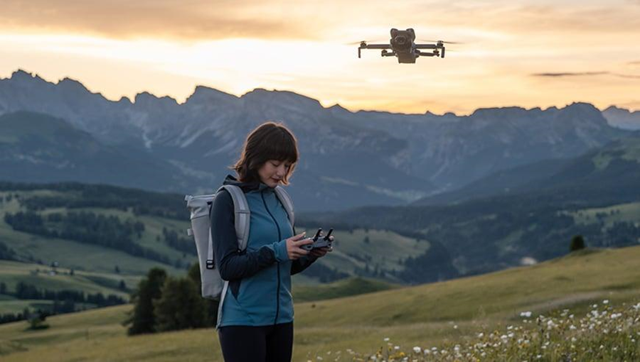 Tworzenie efektownych materiałów nie wymaga już specjalistycznych umiejętności. DJI Mini 5 Pro został wyposażony w zestaw funkcji, które pozwolą osiągnąć imponujące rezultaty przy minimalnym wysiłku. Tryby MasterShots i QuickShots automatyzują nagrywanie złożonych sekwencji, a Free Panorama łączy wiele zdjęć w jedno, prezentując obiekt czy krajobraz w pełnej okazałości. Bez trudu uwiecznisz więc majestatyczne szczyty górskie albo nadmorskie widoki o zachodzie słońca. Również materiałów także odbywa się szybko i bezproblemowo – dzięki funkcji Off-State QuickTransfer wystarczy aplikacja DJI Fly, aby zdalnie wybudzić drona przez Bluetooth (technologia bezprzewodowa do komunikacji krótkiego zasięgu) i przesłać pliki przez Wi-Fi 6 (Wireless Fidelity, szybka transmisja danych bezprzewodowych) z prędkością do 100 MB/s – bez potrzeby uruchamiania kontrolera.
