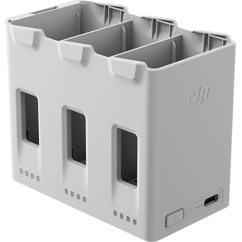 | Dodatkowe informacje | Czas ładowania 3 akumulatorów jednocześnie: ok. 87 min przy użyciu hubu i ładowarki DJI 65W Portable Charger. |